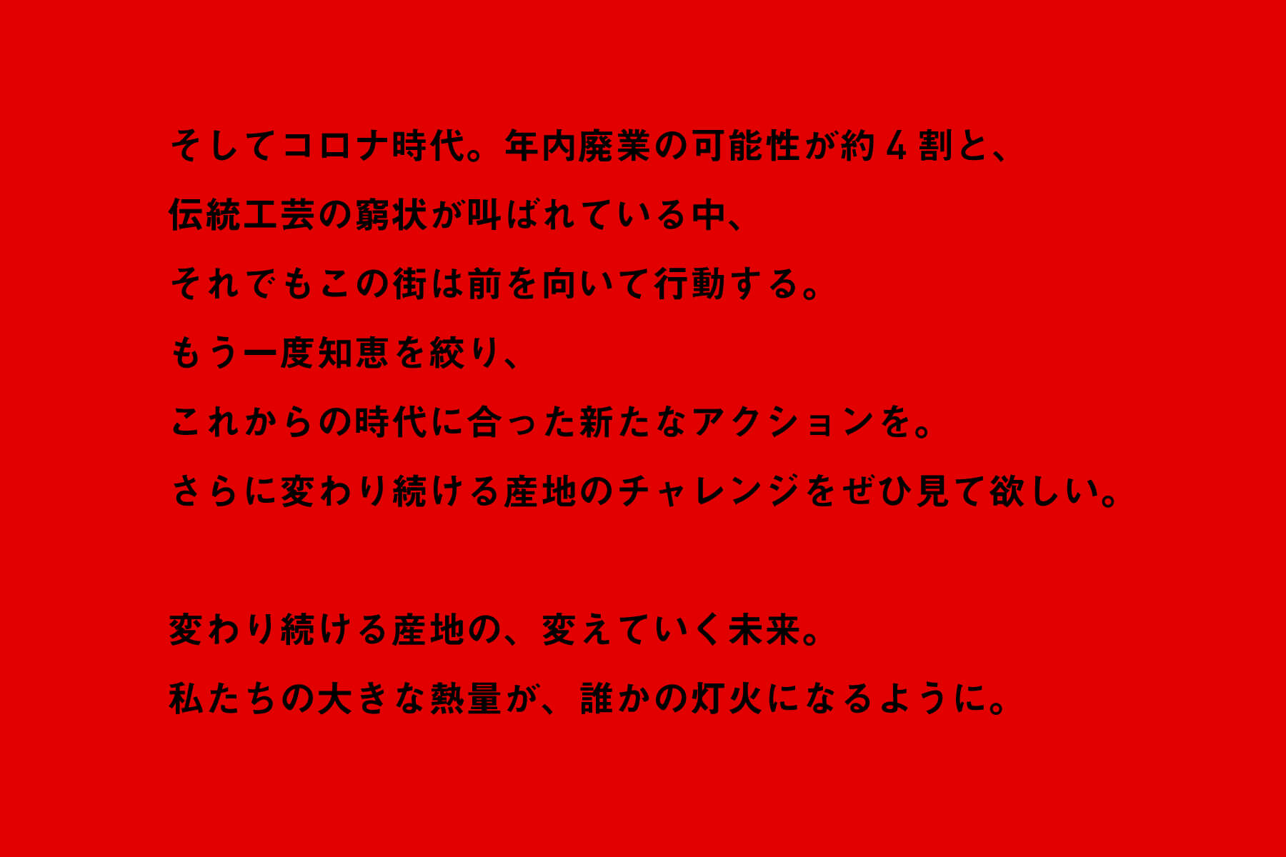今年、私たちは「共につくろう、変わりつづけるものづくりのまちを」というコンセプトを掲げています。