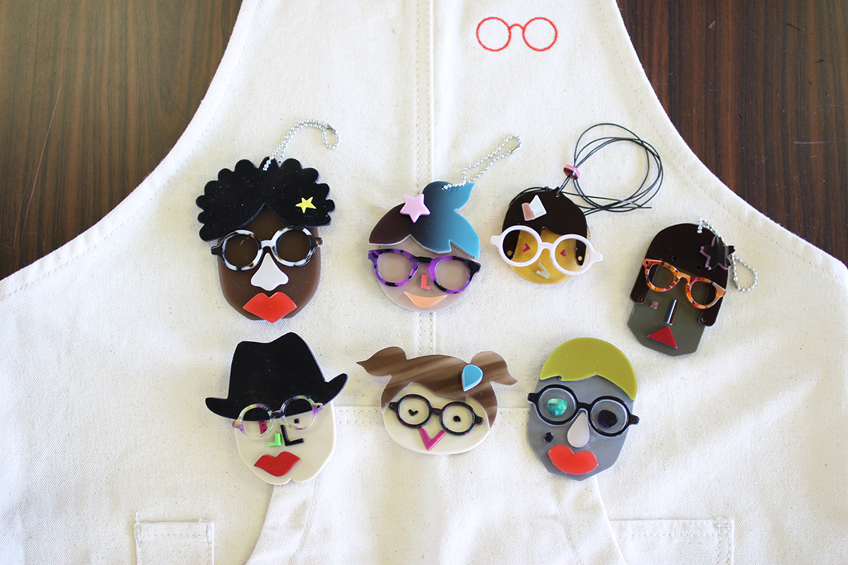カラフルなめがね素材・アセテートを自分で組み合わせて作る、かわいいオリジナルフェイスキーホルダーです。