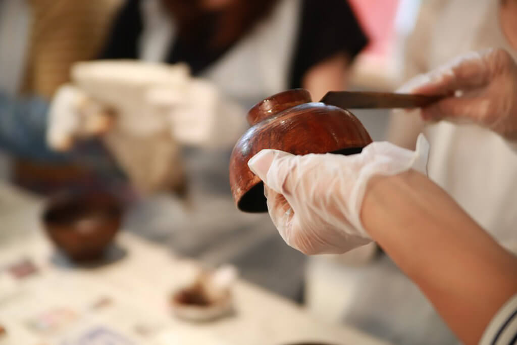 お椀の拭き漆ワークショップ
