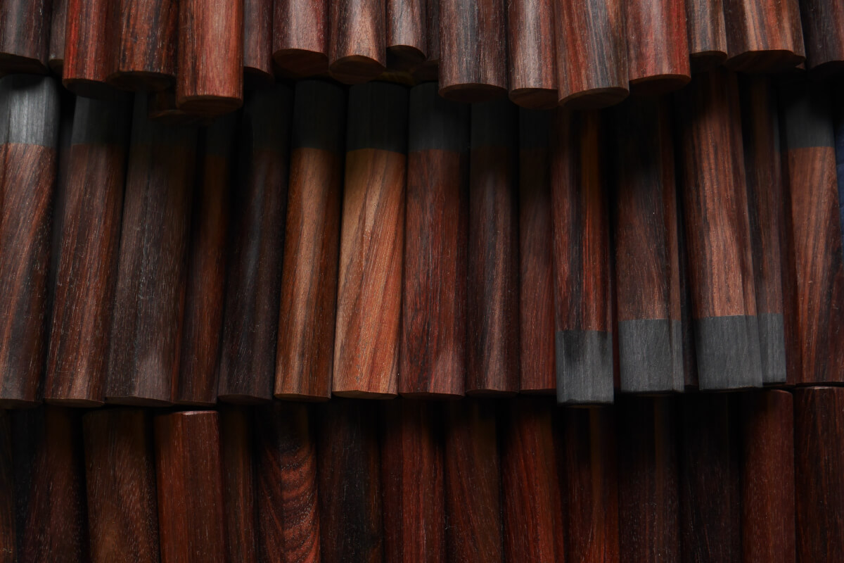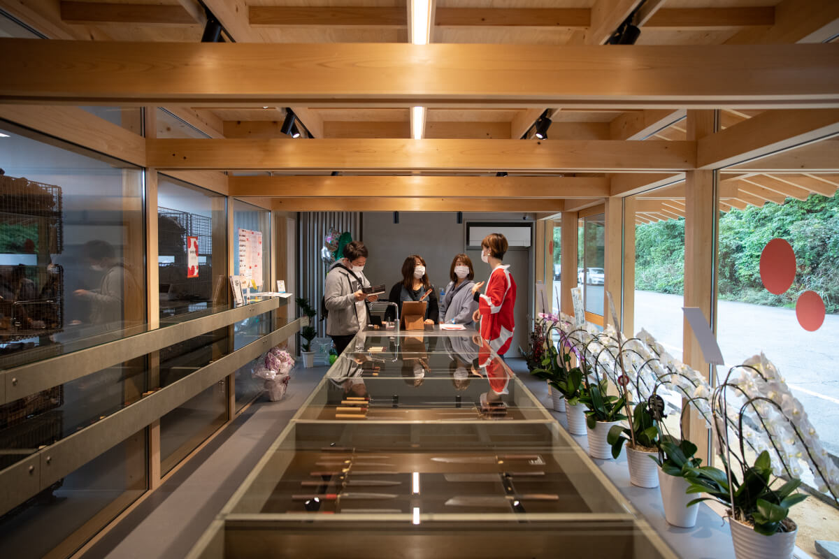 福井県では1社、全国でも数えられるぐらいのニッチな産業。1912年創業、和包丁の柄専門製造の木工所です。地元、越前打刃物のメーカーをはじめ、全国各地の刃物メーカーからお引き立てがあります。2020年の秋には和包丁と柄、蒔絵のギャラリ―「柄と繪(etoe)」も会社敷地内にて始めました。越前打刃物はもちろんのこと、所属蒔絵師による柄や包丁の新たな見せ方も同時に発信しております。