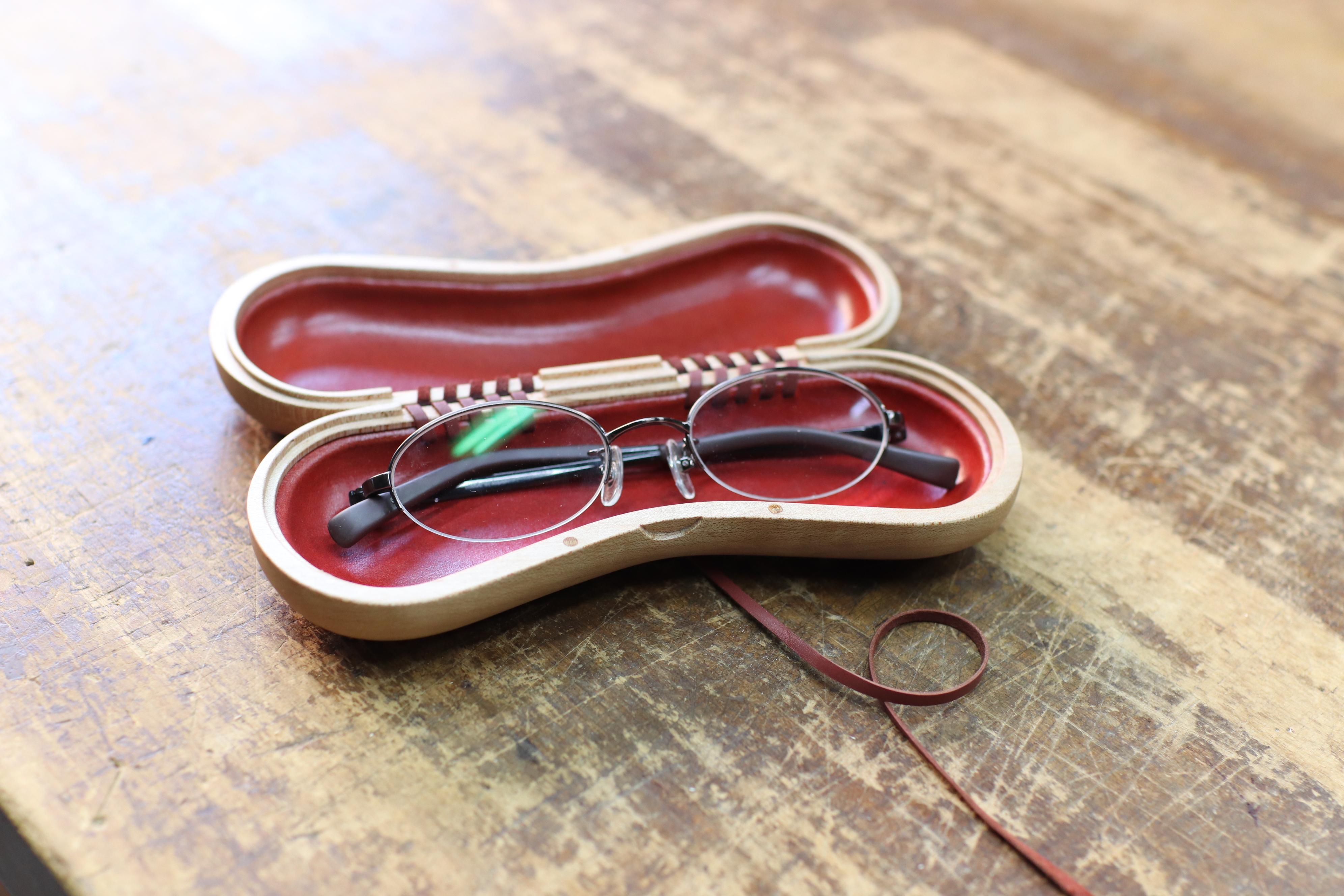 長尾さんが作ったメガネケース。丸みを帯びた温かみのあるデザインだ