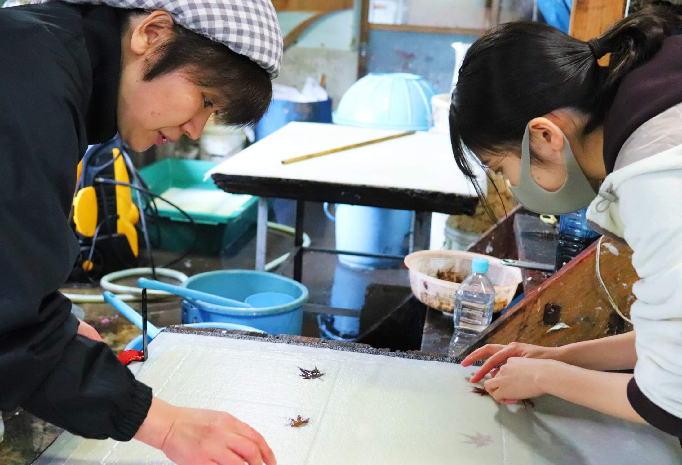 薄紙楮紙の中でも落水紙、金型落水紙を得意としています。又普段の仕事は全国各地の和菓子パッケージを製作。抄紙職人、女性5名で和気あいあい、日々奮闘しながら取り組んでいます。