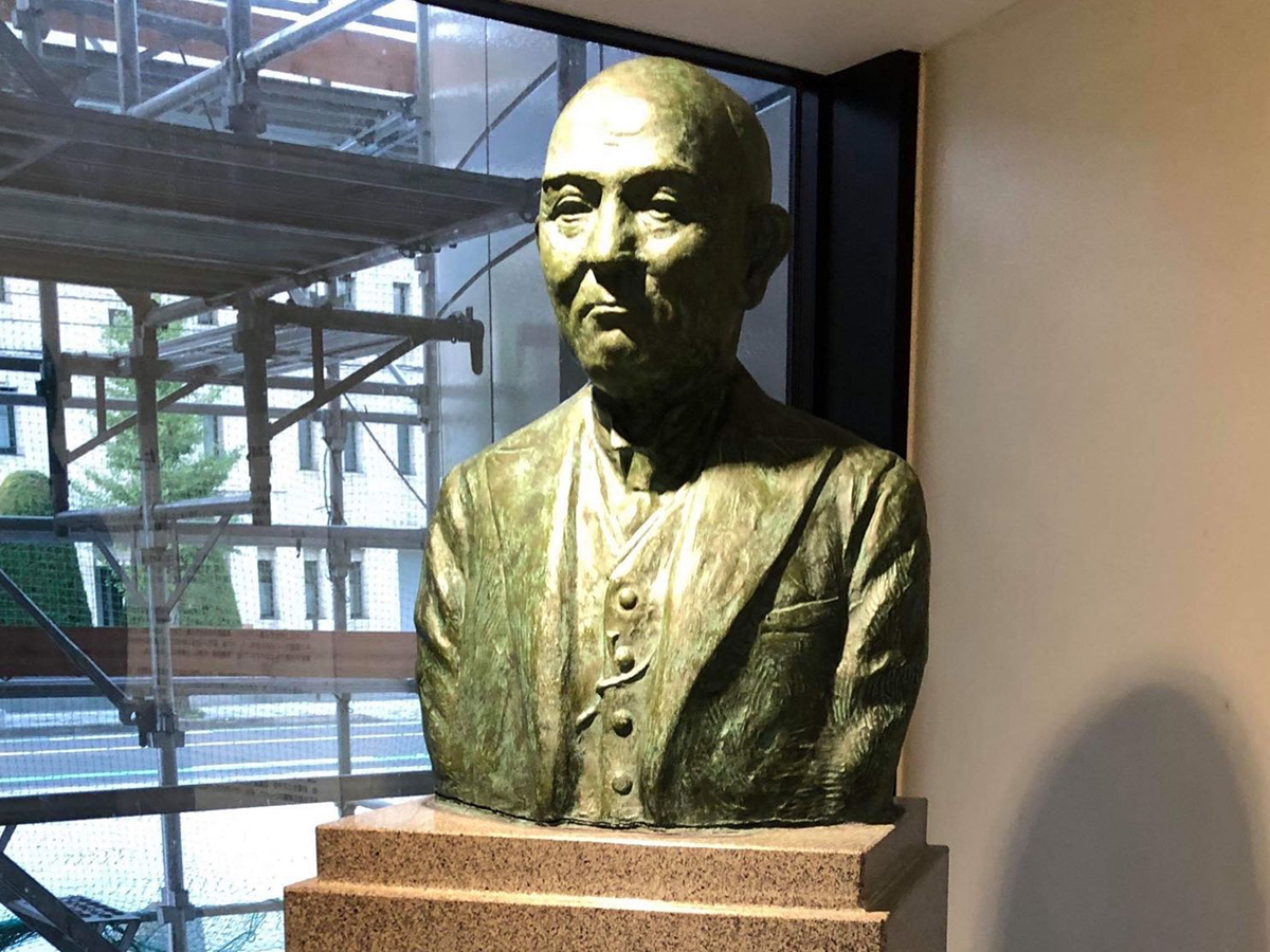 めがねミュージアムにある増永五左衛門の像。 凛々しい顔立ち
