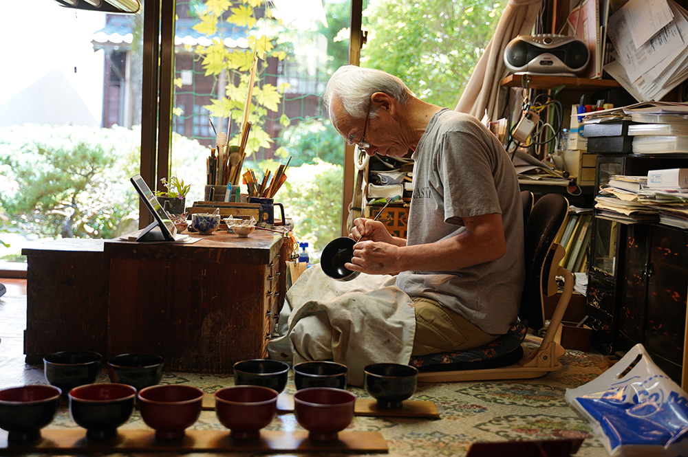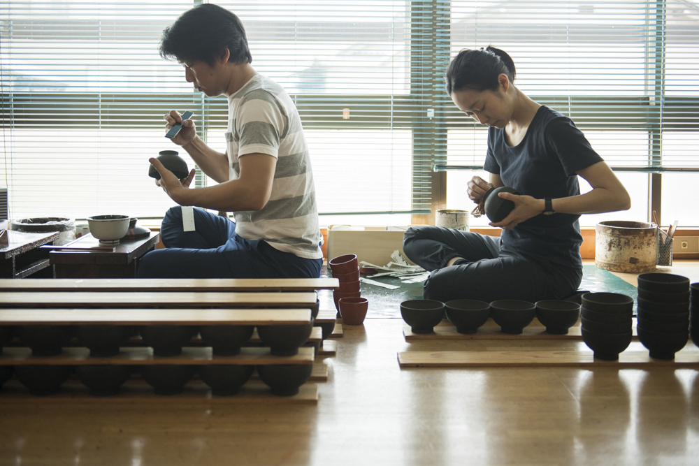 会社創業90年の老舗漆器店。TSUGIと同じ施設内に工房があり、いつでも職人が仕事をしている工程を見学できるようになりました。