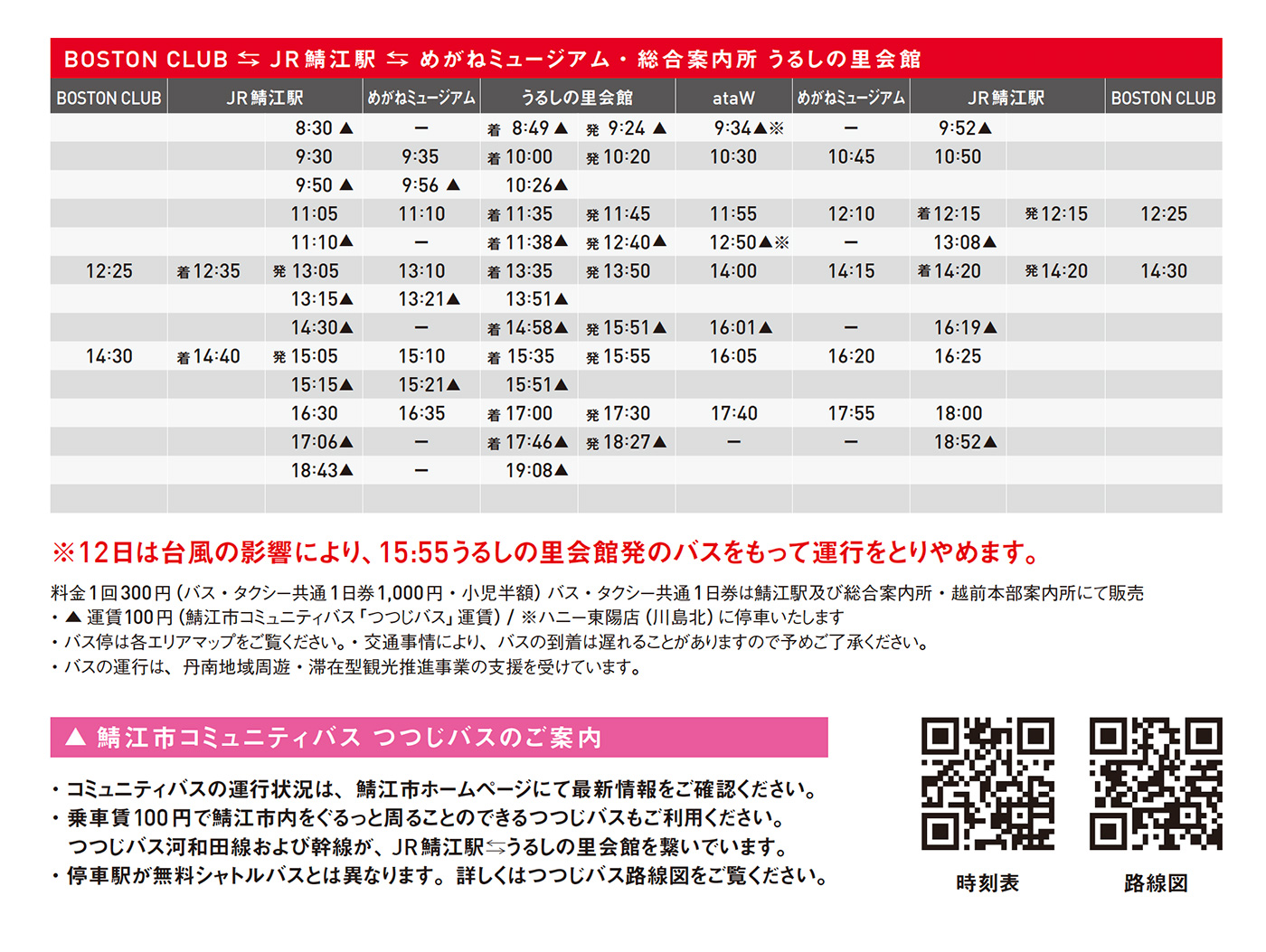 ◯同時に、RENEWで運行するバス及びタクシーについても、12日16:00以降は運行を取りやめます。ご注意下さい。