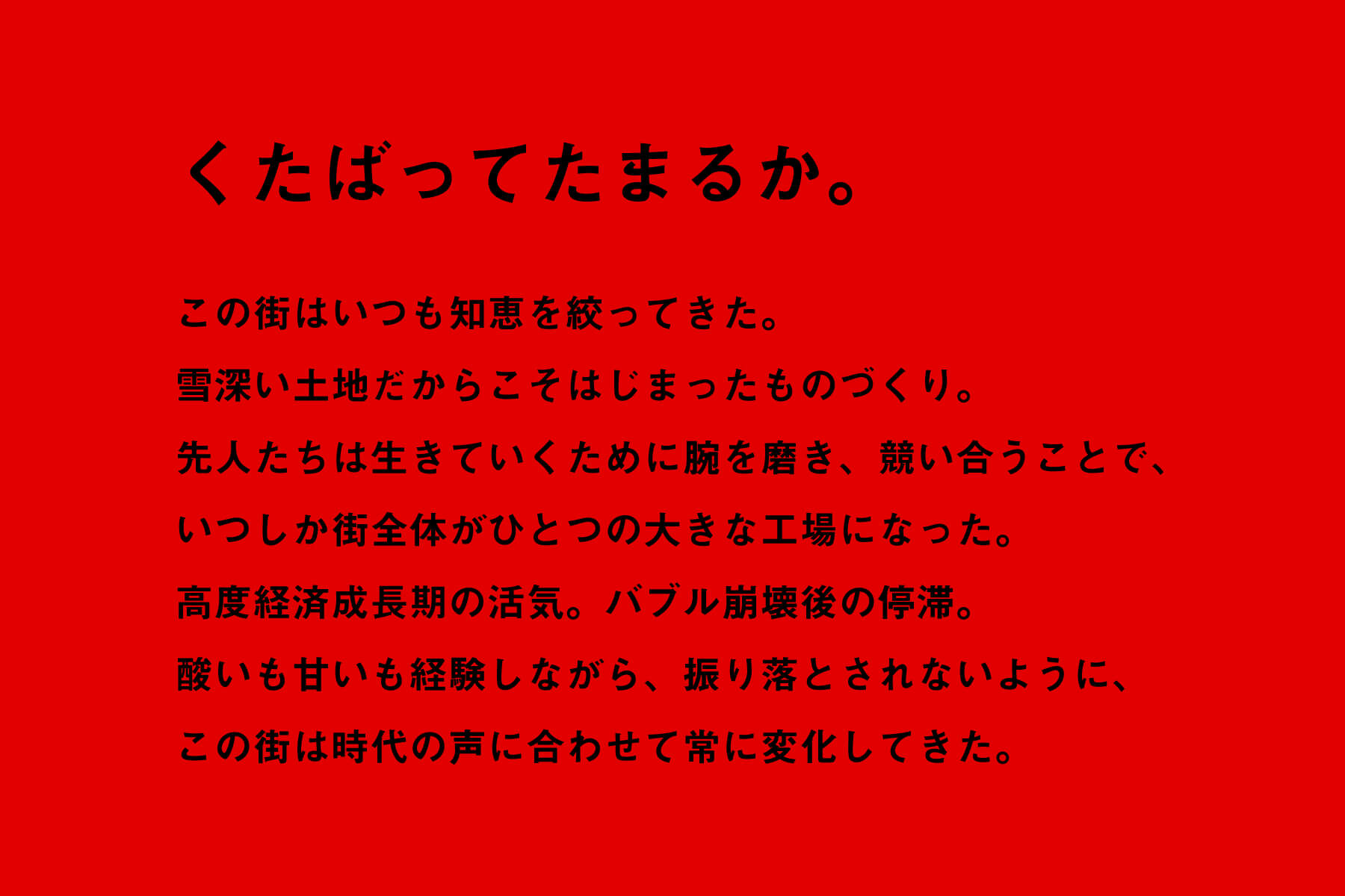 今年、私たちは「共につくろう、変わりつづけるものづくりのまちを」というコンセプトを掲げています。