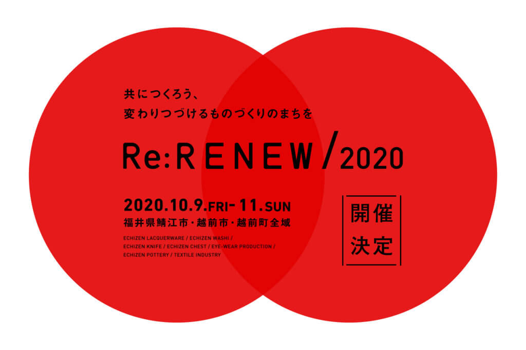 10/9(金)-10/11(日)。福井県鯖江市・越前市・越前町を舞台に開催される工房一斉開放イベント「RENEW」、今年の現地開催を決断いたしました。