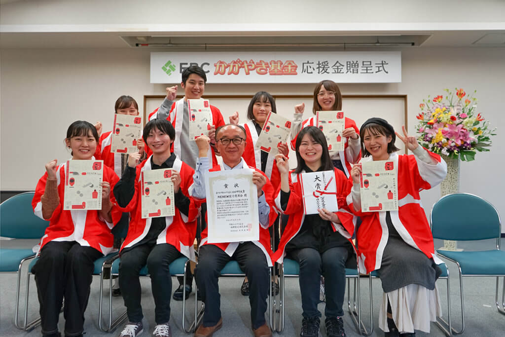 2021.12.12 お知らせ RENEWが「FBCかがやき基金」大賞を受賞しました! 「FBCかがやき基金」は福井県の輝ける未来のために様々な活動を続ける人達を応援する事業です。今年のテーマは「観光」。 RENEW実行委員会は「観光」の分野において、素晴らしい活動をしている団体として大賞をいただきました。 RENEWは今後も福井県丹南エリアのものづくり産業を盛り上げ、まずは2024年の新幹線開業を目標に産業観光の発展に尽力していきます。 FBCかがやき基金 WEBサイト https://www.fbc.jp/fbcweb/fbc_kagayaki