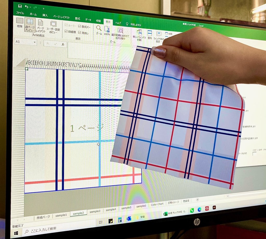 自分で考えた「チェック柄プリント生地」をお作り頂けます。