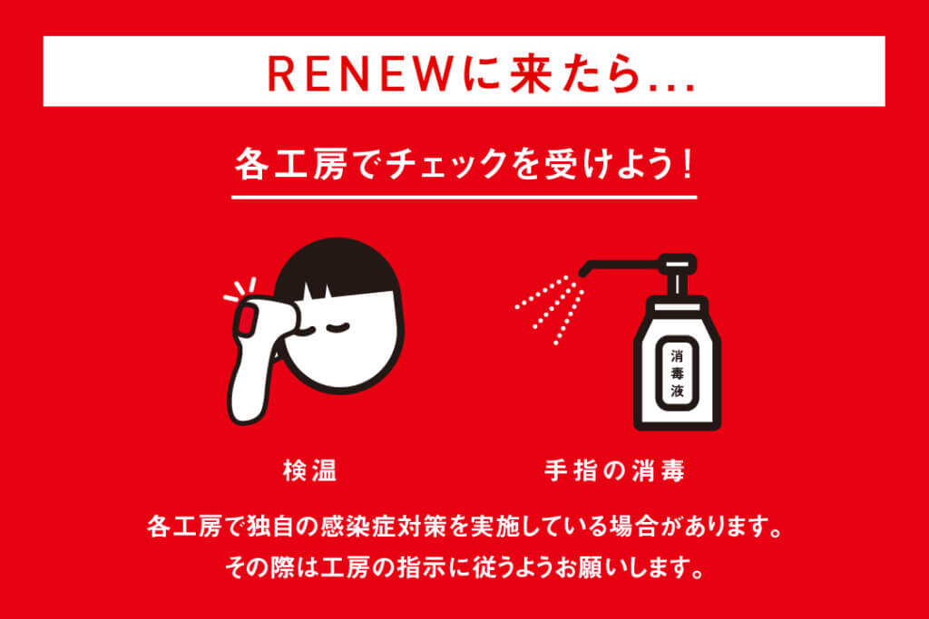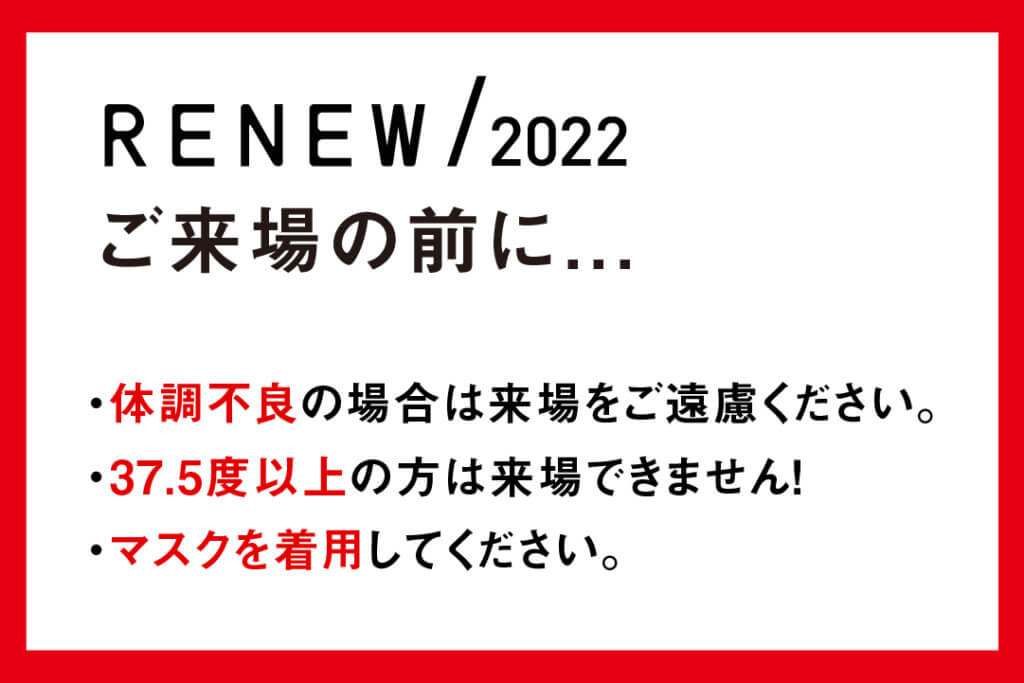 ・来場前に必ず体調をチェック(37.5度以上の方は、RENEWにご来場いただけません。)