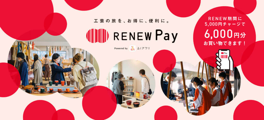 5,000円チャージすると6,000円分のお買い物ができる、20%プレミアム付きデジタル商品券『RENEW Pay』を実施します!