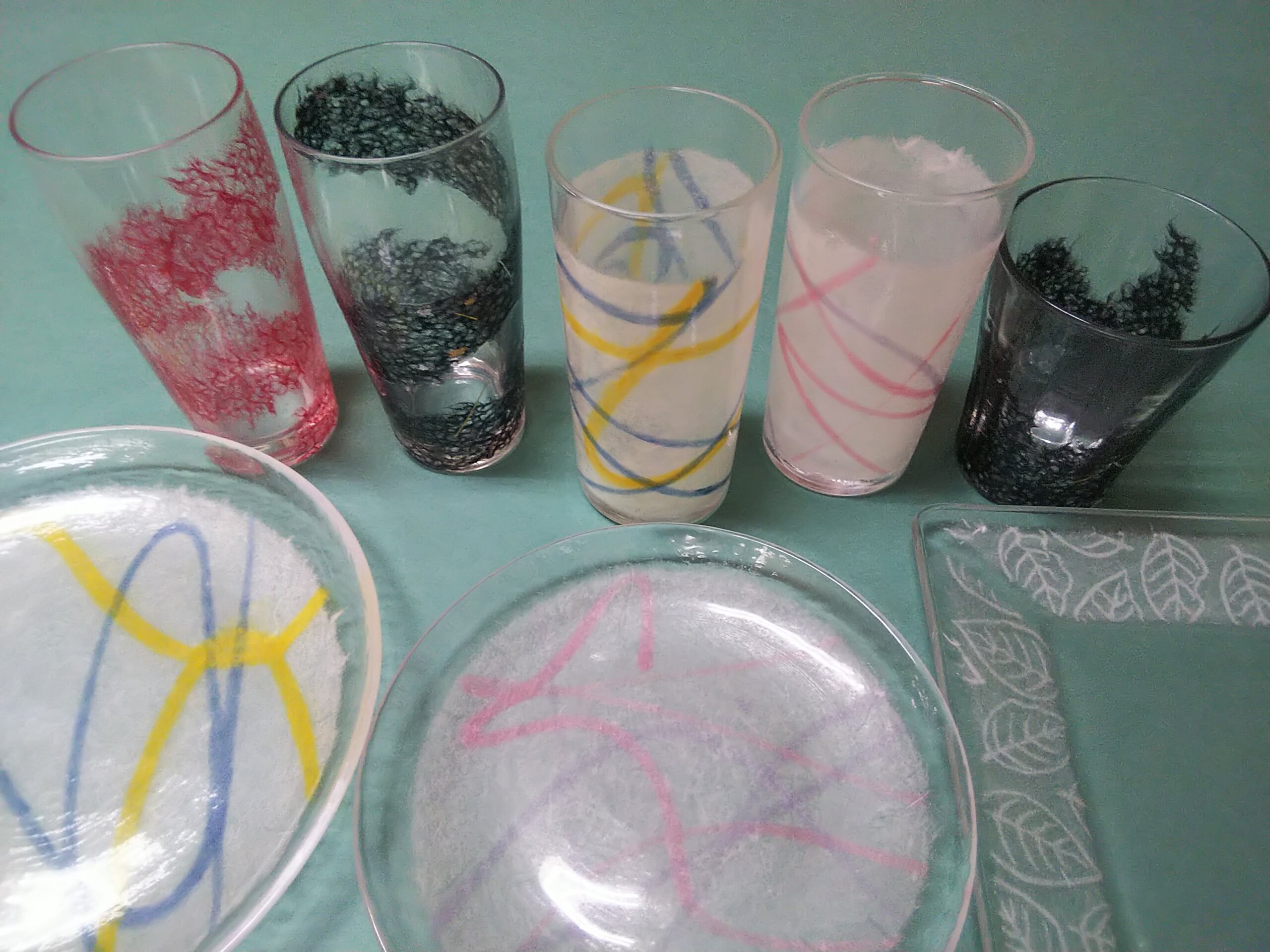 越前和紙を使用して自分だけの和紙グラス、和紙ガラス皿を作ります。コーティング加工をして後日発送します。