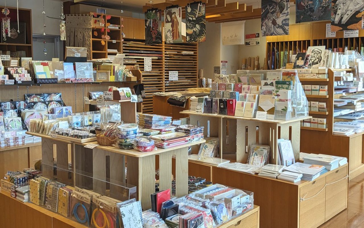 併設する「和紙処えちぜん」は、産地組合の直売店。書画用紙はもちろん、和紙の名刺入れやバッグなどの雑貨も豊富に揃っており、きっとお気に入りの一品が見つかるはずです。全国発送にも対応。越前和紙の魅力をたっぷり感じながら、ゆっくりとお買い物をお楽しみください。