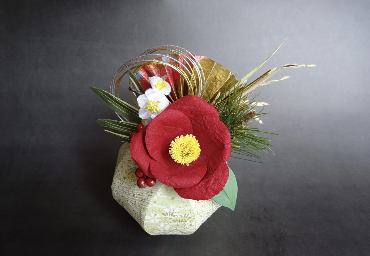 越前和紙を使用したお正月飾りづくりです。椿の花づくりと、組み立てをします。