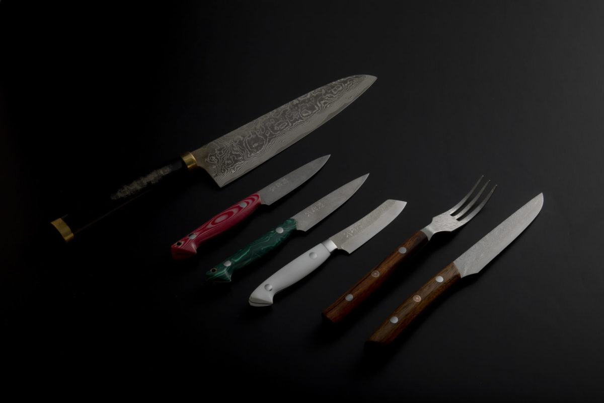 佐治打刃物の包丁は、日本国内だけでなく海外の方にも人気のブランドとして認知されています。銅と真鍮の有色が特徴的なダマスカス模様の包丁は、多くのシェフにも愛用されている逸品です。