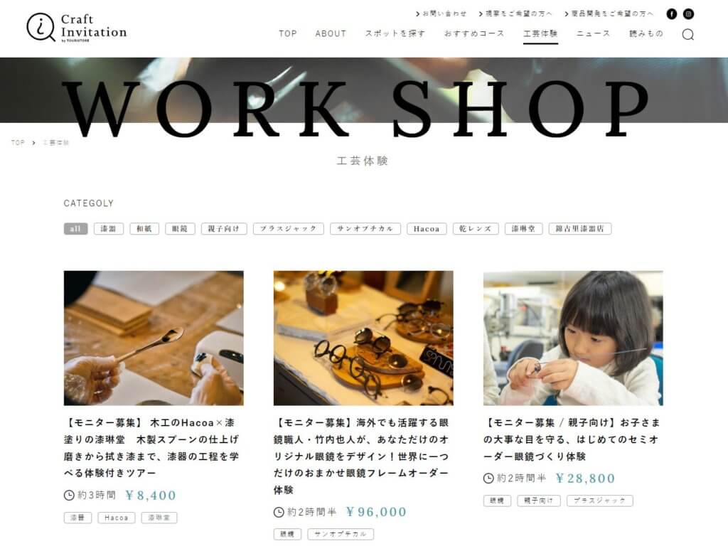 今回は、5つの工房のものづくり職人体験と、2つの産地ツアーをご用意しています。興味のある方は内容をチェックして、ぜひ気になるモニターの体験・ツアーにご応募ください。