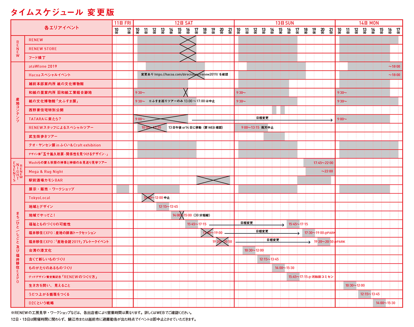 台風19号が日本及び福井県へ近づいている影響を鑑み、RENEWの実施時間を以下の通り制限いたします。