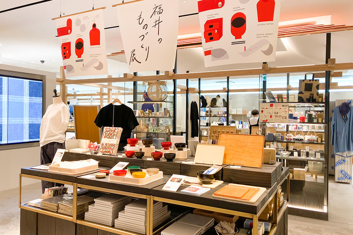 各産地の12企業から個性あるプロダクトたちがお店のメインスペースに並びます。ぜひ、こだわりの商品を手にとって、福井のものづくりを感じてみてくださいね。