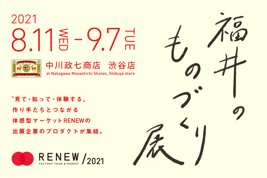 【中川政七商店×RENEW】8/11〜9/7にて、福井のものづくりが渋谷に集結!