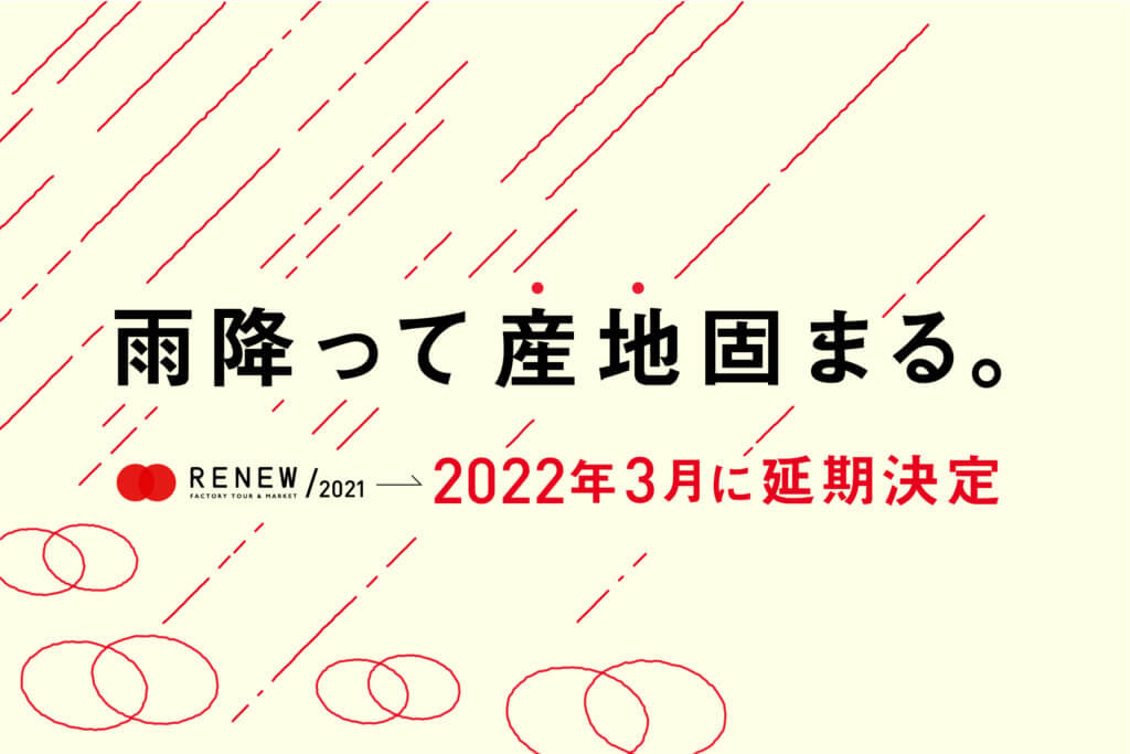 2021年10月8日(金)〜10日(日)に予定していました「RENEW/2021」は、現地開催を2022年3月に延期することに決定いたしました。