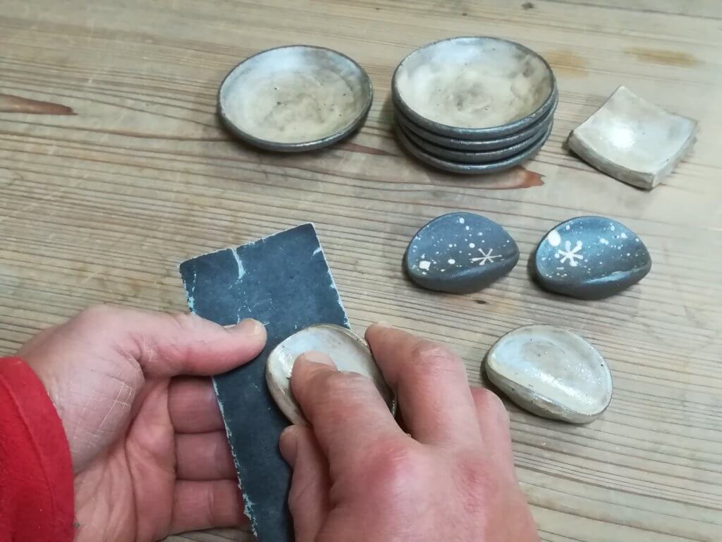 徳木工にて木地を選び丸廣意匠にて約60種類のカラーから塗り色を2色選んでオリジナルの器が作れる体験です。先ずは徳木工で簡単なペーパー磨き作業をしてから丸廣意匠に移動して塗り色を選んで頂きます。