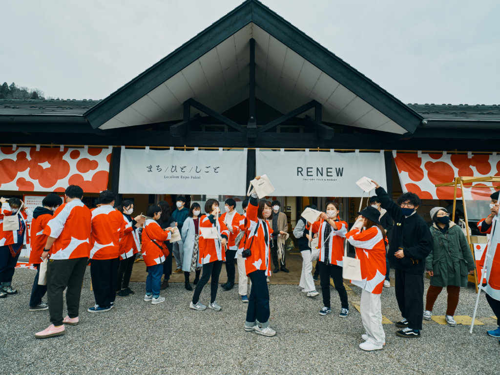 RENEWおよび福井県越前鯖江エリアのものづくり産地のサポーターチーム「あかまる隊」。県内県外を問わず、学生から大人まで世代を問わず、約80名が参加しています。