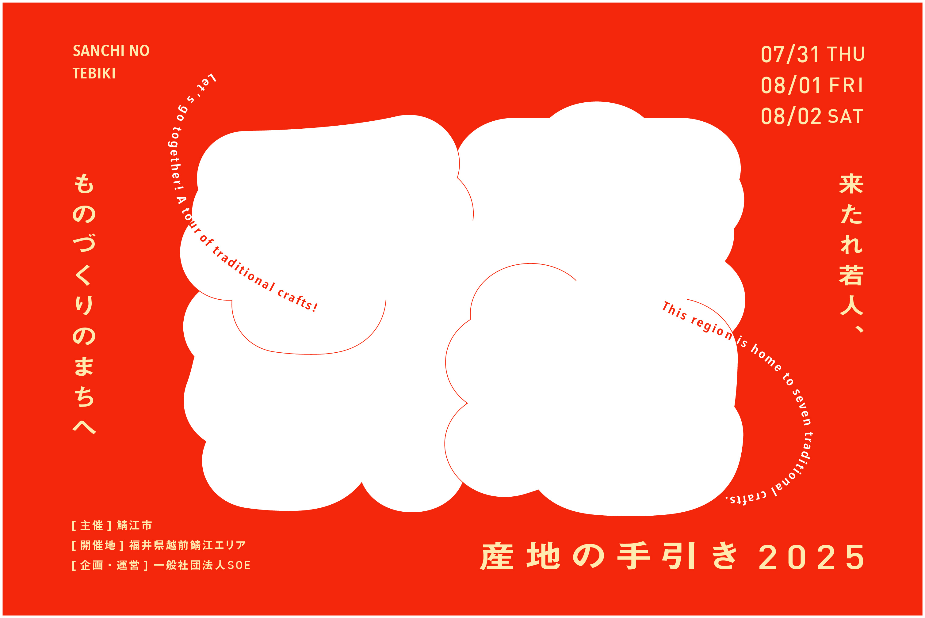地方暮らしや伝統工芸、そんなキーワードに惹かれてるけど、どう動けばいいかわからない。そんな方へ、 日本最大規模のオープンファクトリーイベントを築いたこのまち、越前鯖江に暮らしている「作り手・伝え手・使い手」の人々に触れてみませんか?