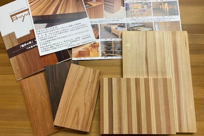 杉の集成材を組み合わせたオリジナル木材「デザインウッド」。