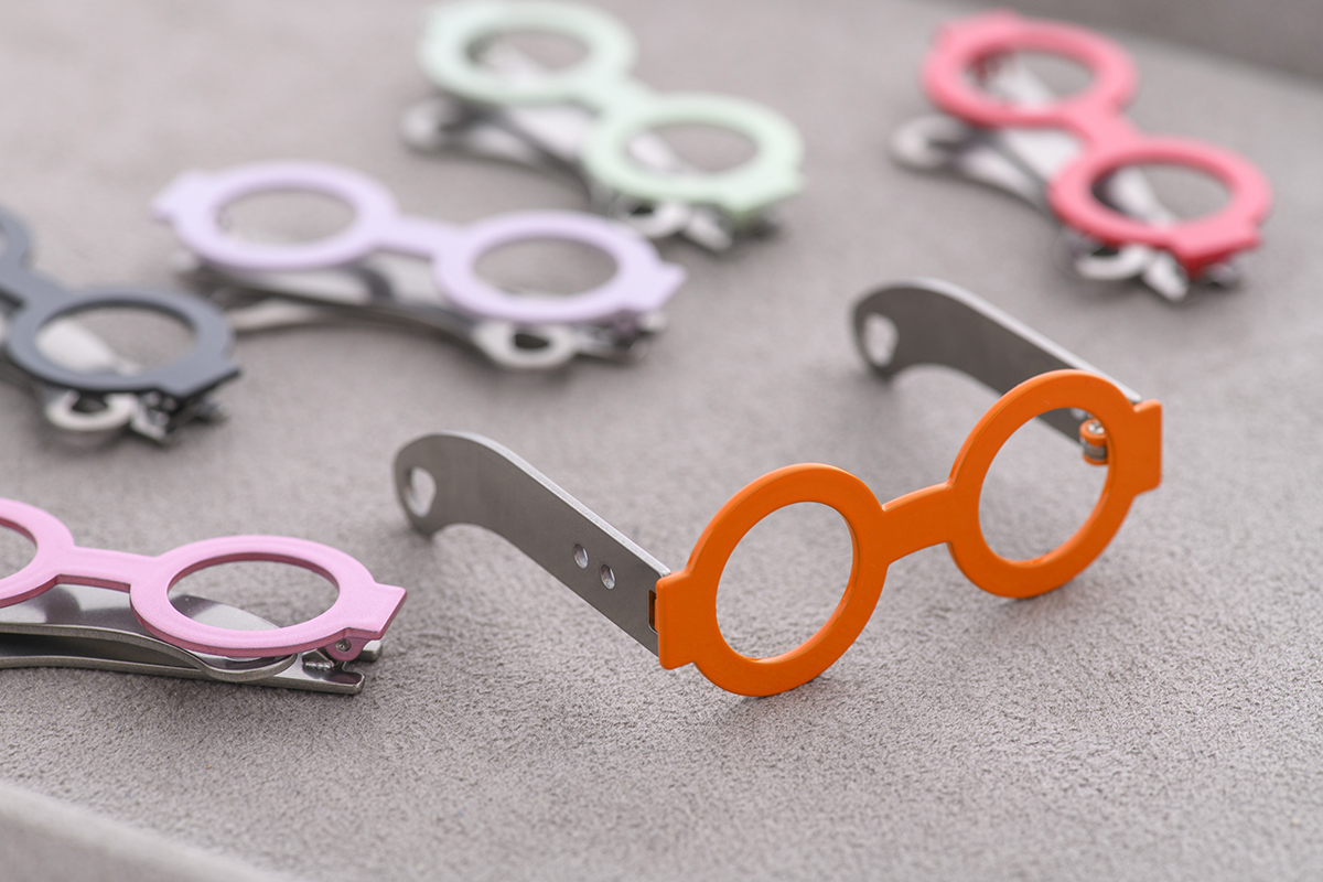 小さいながらも本格的につくられたチタン製のめがねパーツを、ネジで組み立てて、完成させる体験です。RENEW特別カラーも限定で。