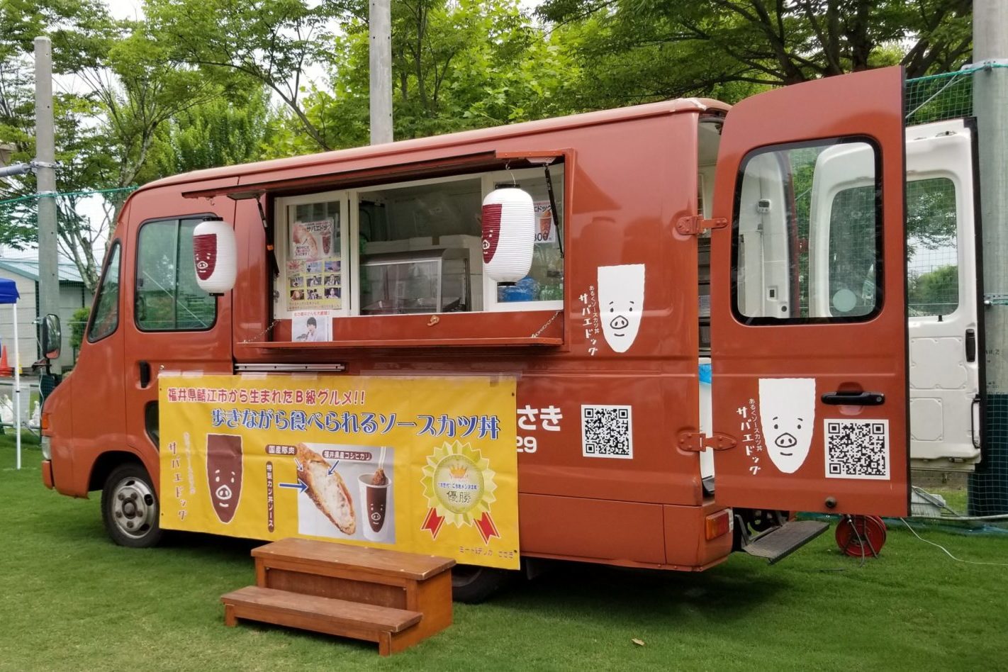 また、当店発祥で福井の人気グルメとして多数のメディアでも取り上げて頂いてる「歩くソースカツ丼 サバエドッグ」はキッチンカーにていろいろなイベントに出店しております。