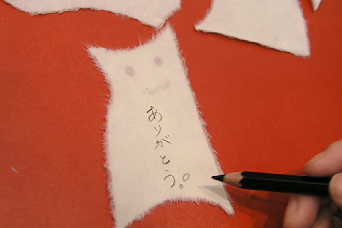 ちぎり和紙は、水をつけて和紙をちぎることで、毛羽立ちなどを表現する和紙の技法です。