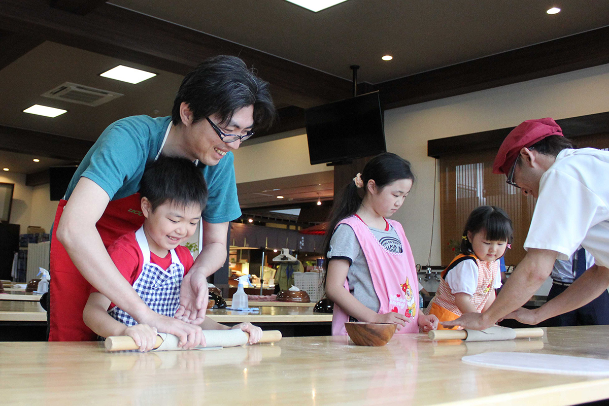 創業100周年、越前そば発祥の地で、本格そば打ち体験に挑戦しませんか。伝統工芸品の越前打刃物の包丁も使用。スタッフの丁寧な指導で、初めての方やお子様でも安心して体験できます。