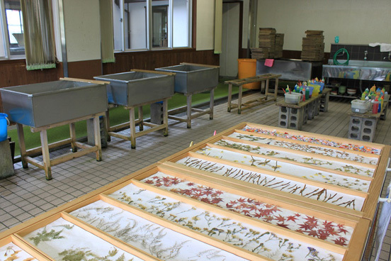 スタッフのサポートで、自分だけのオリジナル和紙を作ることができ、一度に80名の同時体験も可能です。
