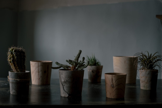 杉の間伐材を利用したプロダクト「TIMBER POT」など、伝統的な丸物木地師としての技術を継承しながら、「価値の再定義」をコンセプトに様々なオリジナルプロダクトを製作。また「持続可能」をテーマに作り手の領域にとどまらず様々な活動を行っています。