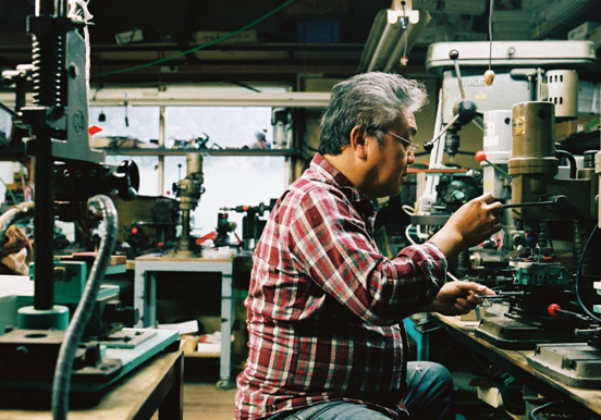 家族で仕事をしている小さな工場です。ヤスリ掛けなど熟練を要する職人技から、CADを利用したNC切削機まで、昔ながらの手作業と、今の時代の機械を導入してメガネ作りをしています。自社製品はありませんが、依頼される仕事を真摯に作り上げ信用を得て今日に繋がっていると自負しております。また、製造過程で出てきてしまう端材をアップサイクルして雑貨・アクセサリー作りやワークショップもしています。