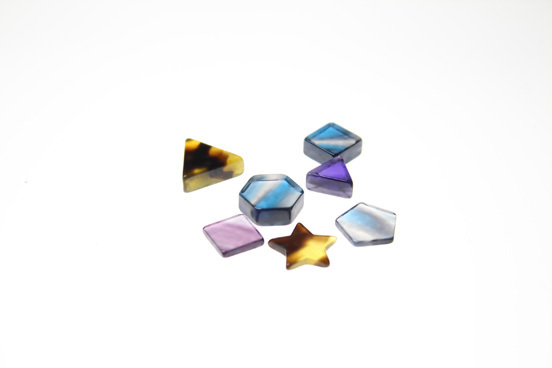 眼鏡を作るときに出来てしまう端材を利用し、キーホルダーやアクセサリーを作りましょう。 端材はあらかじめいろいろな形に切りだし、磨き、洗浄までしてあります。自分のセンスで組み合わせて作り上げてください。