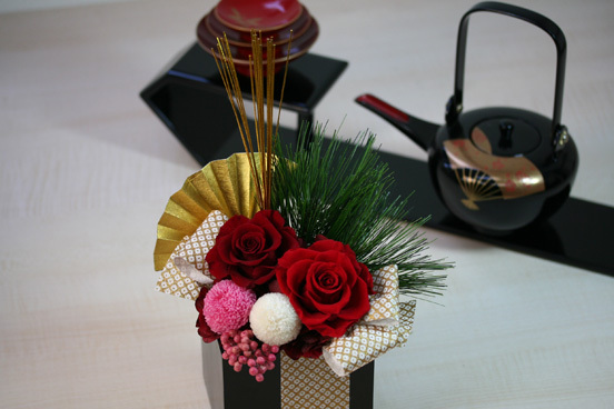 漆器を使ったプリザーブドフラワーアレンジ作り
