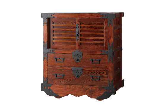 武生タンス町通りに江戸時代より店舗を構え、代々桐タンスや時代箪笥を製造しています。100年以上経った古い桐タンスも、割れや欠けを補修し、表面を薄く削って色付け直せば、美しく蘇ります。